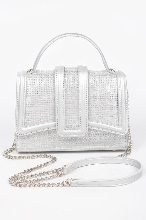 The clutch features a sleek, compact profile meticulously embellished with sparkling hot-fix details, engineered to create a rhythmic and eye-catching radiance. Its sturdy top handle offers a seamless blend of modern design and timeless elegance, providing a dignified carrying option that frames your evening ensemble with a high-fashion glow. Bearing the prestigious BYMANYC ® New York signature, the EMPIRE bag is crafted from high-quality polyurethane and resilient mixed metals, balancing its grand visual presence (8" x 5.5" x 2.5") with a durable construction that houses your essentials with effortless precision.